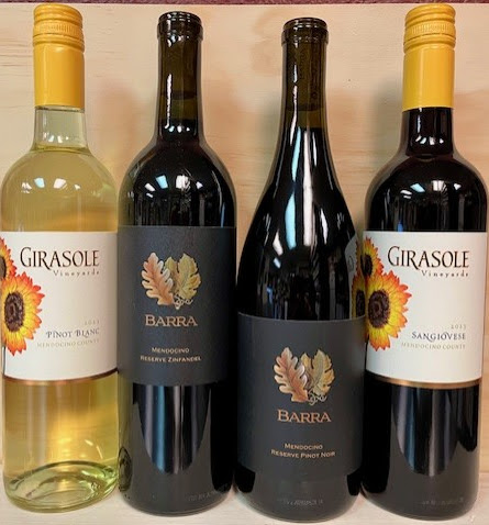 2023 Girasole Sangiovese, Mendocino – On the nose, inviting aromas of wild strawberries, juicy raspberries, and a hint of rose petals. On the palate, flavors of ripe cherry and pomegranate are complemented by notes of sweet tobacco and delicate baking spices. The smooth tannins and fresh acidity make for a delightful, elegant finish. $16.00
